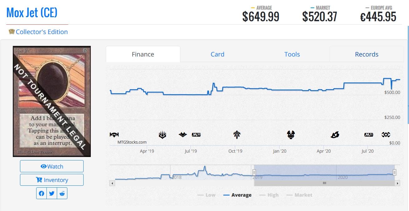While the Revised copy was the one that popped on MTGStocks, a quick change to settings reveals that the Collectors’ Edition printing also jumped a significant amount.