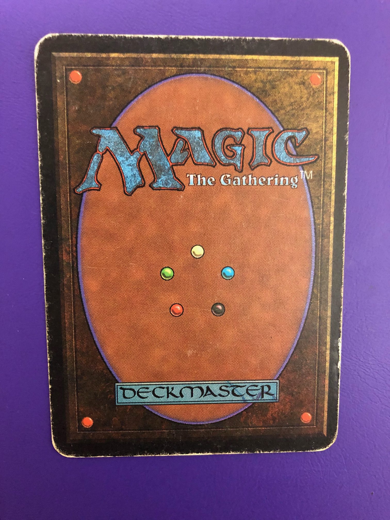 As you can see, purchasing a damaged card can be very risky (hence why I describe it as “the damaged lottery”). I’ve only tried it a couple times from TCGplayer. One seller I like in particular tends to grade their cards one tier lower than I personally would—therefore, I trust their damaged cards to be on par with heavily played condition. But there’s always a chance it doesn’t break that way. Conversely, I once bought a cheap, damaged Legends Spectral Cloak and it looked like someone had dropped a pile of bricks on the card.