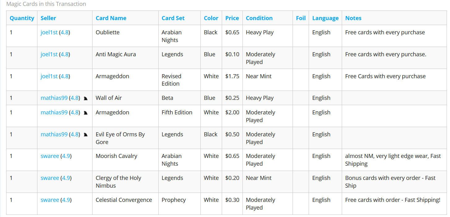 I delineate 2006 as the start of a new phase because that’s the first time I started purchasing singles online. Looking back at my Card Shark order history, I see that January 25th, 2006 marked the date of this momentous event. Here’s the order below (notice how I was into older cards even back then):
