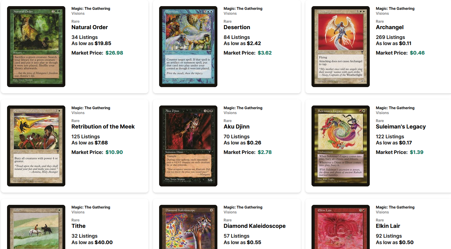 Oh, and this strategy may also help you uncover newly listed copies of a bad Reserved List card that already spiked. Diamond Kaleidoscope already saw some targeted buying. But that was a few days ago—maybe some stores will post their copies near the “old price” and you’ll be able to get that copy for your collection after all. (I checked: that $0.55 listing is for a damaged copy…I’ll leave it up to you whether or not you want to play the damaged lottery on this one.)