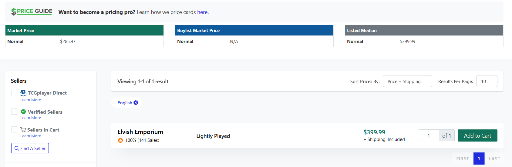 Beyond Dual Lands, I’ve also observed vendors slowly restocking other high-end cards as well. Card Kingdom has finally started restocking Collectors’ Edition Power at new, higher prices. They have over a dozen copies of Bazaar of Baghdad restocked ($3009.99 for HP!), a few Library of Alexandrias ($2449.99 for HP) and even two The Tabernacle at Pendrell Vales ($4549.99 for HP).