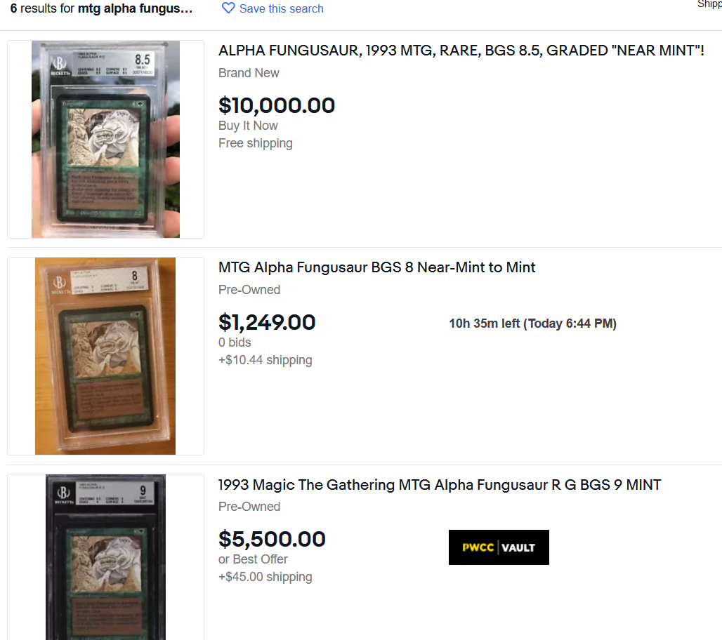 By the way, I also discussed how a PSA 10 Alpha Black Lotus had recently sold for $20,000. Nowadays that card would probably sell around $500,000 at auction.
