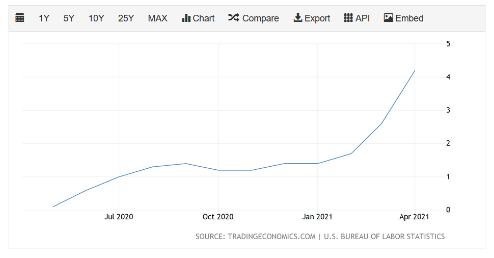 Well, there are two sides to this debate. Some say this inflation is transitory and reflects expected adjustments in prices as the economy re-opens following 14 months of hibernation via lockdowns. This group of individuals aren’t too concerned about the data point and expects the number to retrace. They point to some of the most influential prices that drove up the CPI number so drastically: gasoline, hotels, used cars, airfare, and the like.