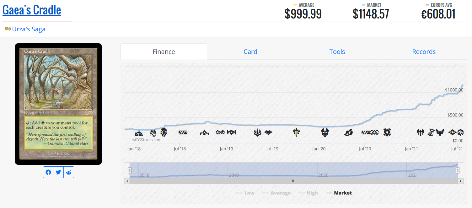 Now I’m looking at some cards on Card Kingdom’s site and I’m seeing increases in buy prices. One example is Gaea's Cradle: