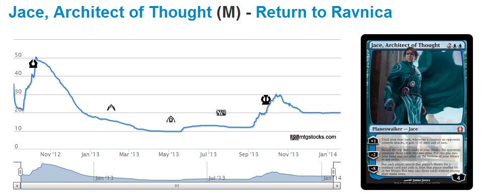 After Innistrad block rotated out of Standard and the card pool shrank drastically, this planeswalker suddenly became relatively powerful. The result--a twofold increase in price and significant profits for those who were keen on the investment.