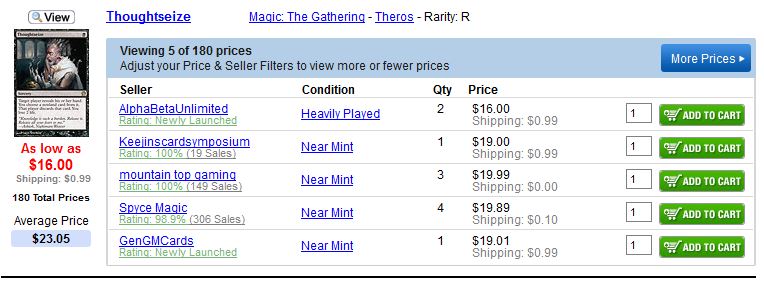 Speaking of Jace, Architect of Thought, wow. $30? I really wish I hadn't sold so many at $18. I profited selling at $18, but, still. I know Corbin says "leave 10% for the next guy" but I think the next guy got quite a bit more than 10%. If you have a few copies left like I do, you could sell now, but I think I may actually wait and see if $30 is even the ceiling.