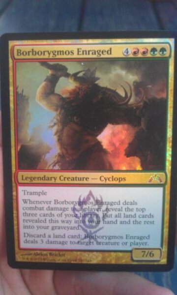 The Gruul 8(!!) CMC Guild leader Mythic. It has EDH potential and therefore will be still liquid in your trading binder in the early periods. I would be happy to open this at the Prerelease & other limited events since it is obviously a bomb and highly appealing to casual & EDH players. I recommend trading this with low liquid Standard or EDH stock one have in his/her binder to increase liquidity.