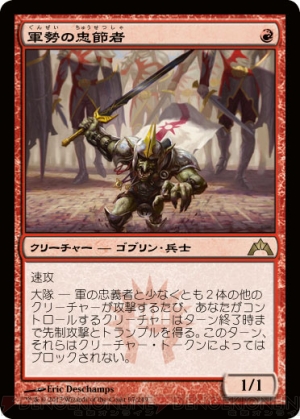 So we have the 1-drop Battalion creature for Boros, and she seems quite powerful as far as the ability goes. As long as two other creatures are attacking, this is another 3/3 for one mana. While not so good on the block as Wild Nacatl or Kird Ape, she still may be noteworthy in aggressive decks. That being said, she has a lot of other tough one drops to compete with in this part of the mana-curve, so she may not make the cut.
