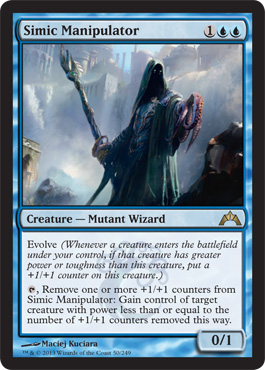 Being the Gameday participant promotional card can give this version a slightly higher price if the original art is not so desirable. I do not see this being played that often in competitive constructed because a 2 mana for a +1/1 counter does not seem enticing. The second ability needs either the first one or another form of counters present on a creature you control. In limited or EDH, this is going to be pure card advantage with the Simic mechanic.