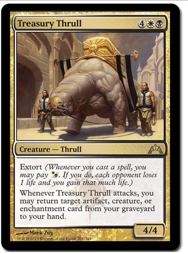 About the card: Treasury Thrull's attacking ability screams to be abused by Commander players. If you open this at the prerelease and you have an EDH audience, chances are likely you will trade these bulk priced cards for some sweet other EDH cards that are stable in price. Highly liquid in the early period but not something I want to invest my funds in at all.