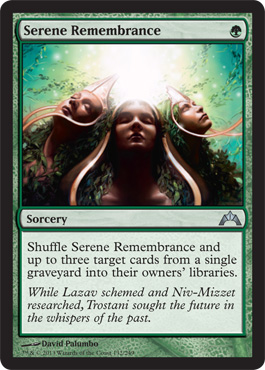 EDH players will love this. I don't know that there's anything big enough in Standard that you want to bother cheating into play, I don't know of very many good ways to order the top of your library to make sure you hit something good and I don't know if whiffing but getting the spell back so you can waste 4 mana next turn is a sufficient consolation. I have no idea how much EDH will make this spike above bulk, nor do I think I want to wait that long.