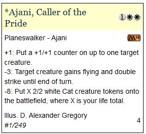 Another ho-hum reprinted Planeswalker. After initial hype, this guy really dropped hard in price. Expect to see that trend continue has tons more copies hit the market.