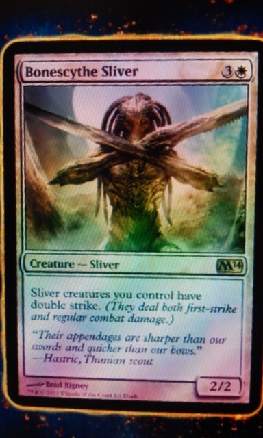 Gemhide Sliver just became obsolete, although I suppose in casual decks you can run 8 of these mana-producing Slivers. I remember Gemhide Sliver being a non-bulk Uncommon at some point, so I suspect these will be worth holding onto. Foils should especially be sweet pick-ups early on for a long-term hold (assuming Slivers are a hit yet again).