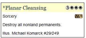 If this is the best sweeper spell in M14 then I'm liking Supreme Verdict even more. I don't recall this card seeing much play last time it was printed, and nothing convinces me otherwise today. Sure, Verdict can't get non creatures but guess what - creatures are what matters most in Standard.