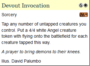 This card is bad. It's powerful, but it requires you to do things you don't want to do like have seven mana and tap all of it and tap all of your creatures. If you're super far ahead that you can tap everything for a turn, congrats, you didn't need to play this card to win. If you do need the angels to win, you're giving them a turn with your pants down to kill you.I don't like it in limited or constructed.