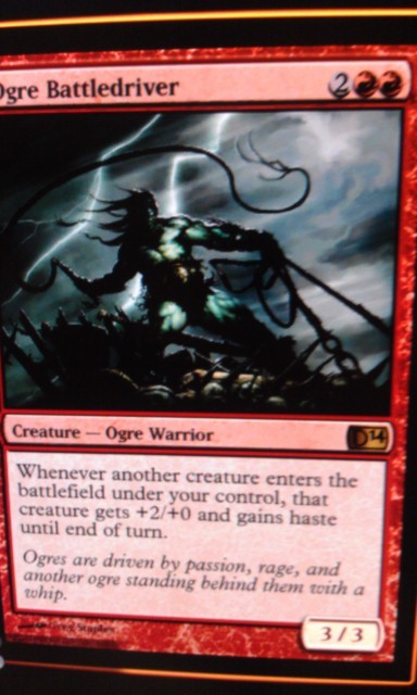 This has some Constructed potential when you can sneak it in on Turn 3. I personally feel if one plays this on Turn four, it is already a bit too late in aggro decks since the first three turns are critical. Still it is a 3/3 Ogre that can boost creatures and give it haste. I think this is going to be a sleeper.
