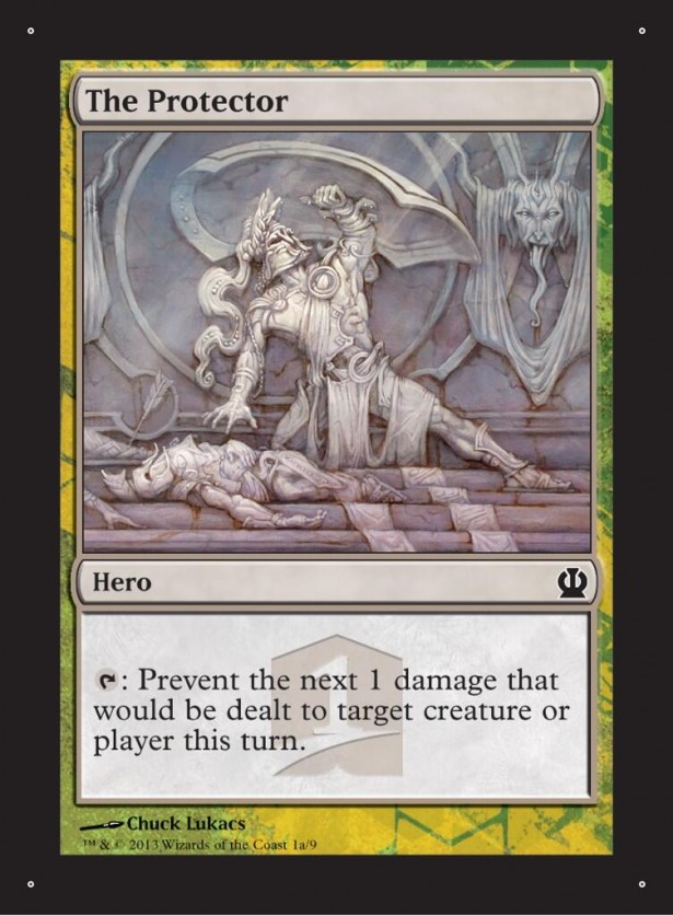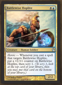 Take a simple Giant Growth, now Anthousa becomes a 7/8 and if I read the card correctly three lands become 2/2. I am not impressed by this card's playability outside Commander and Limited so far. Seeing this is one of the early Heroic creatures spoiled, there might be some fun goodies spoiled later so I keep an eye on this regardless though I don't expect much presence from this Human Warrior fighting Minotaurs.