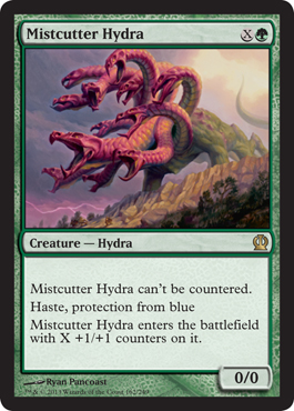 At very first blush, this card seems less good than Vastwood Hydra, a $1 card. Are people countering a lot of creature spells? Or are they just playing removal? I'll make a list of playable removal spells this guy dodges (they spoiled this card 30 seconds ago and I'm making my mind up as I type).