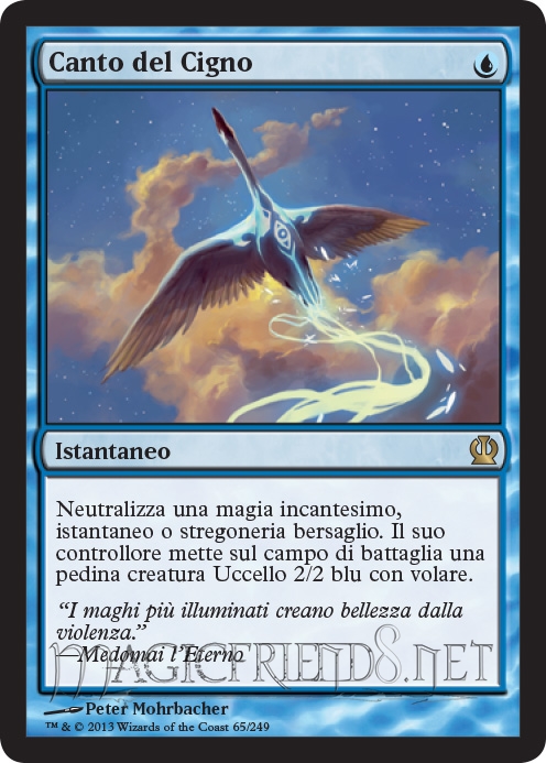 I don't know how to feel about this card. It's more versatile than Dispel and more definitive than Spell Pierce. But I don't like how it gives your opponent a 2/2 flyer. I suppose many decks wouldn't care about this if they plan on wrathing the board anyway, but the drawback bugs me. Perhaps the card is playable in Legacy, where disrupting an important combo card or storm piece can mean gg even if your opponent gets a 2/2.